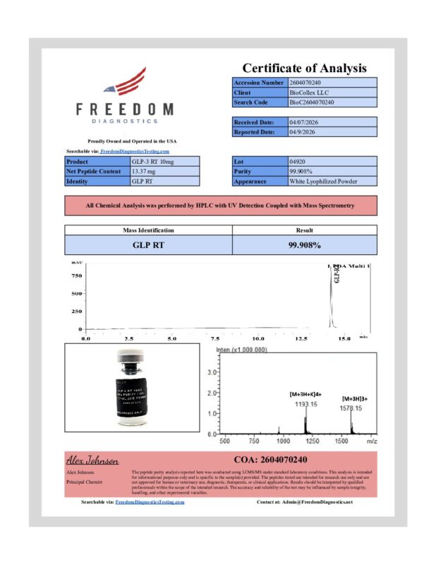 At BioCollex, we are dedicated to supplying the highest-quality research-grade peptides exclusively for laboratory and scientific investigations. Our mission is to support advancing research by providing meticulously sourced, lyophilized compounds backed by independent third-party testing for purity, identity, and sterility.