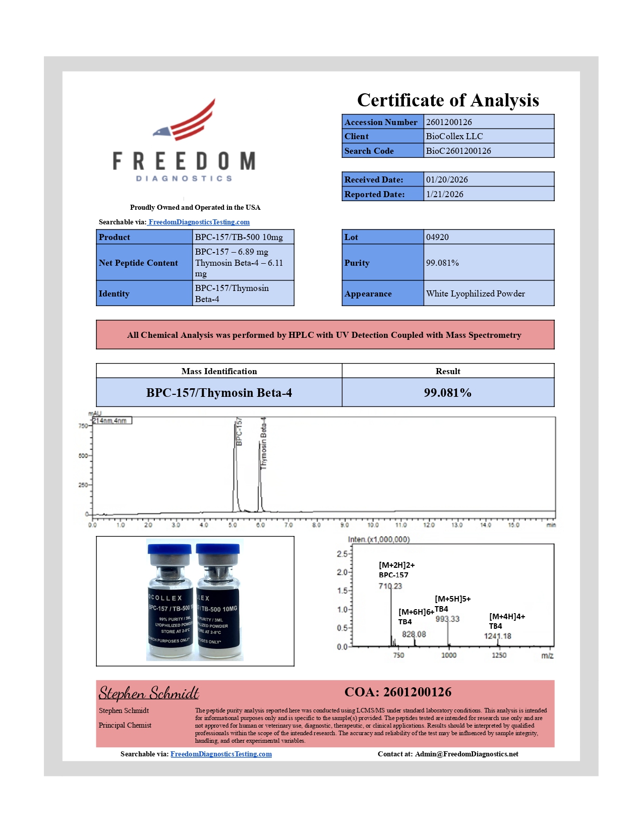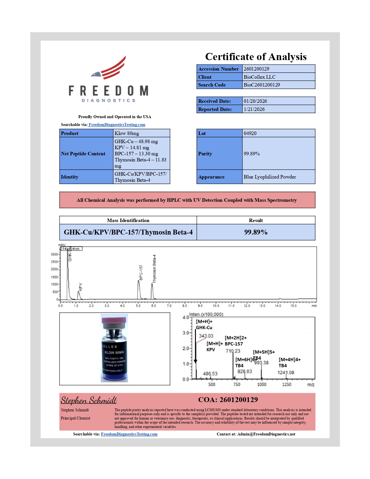 Transparency and quality assurance are central to our research standards. Each production batch undergoes independent third-party laboratory testing to verify identity, purity, and analytical integrity. All Certificates of Analysis are published here for reference, allowing researchers and partners to review documented batch-specific results with confidence.