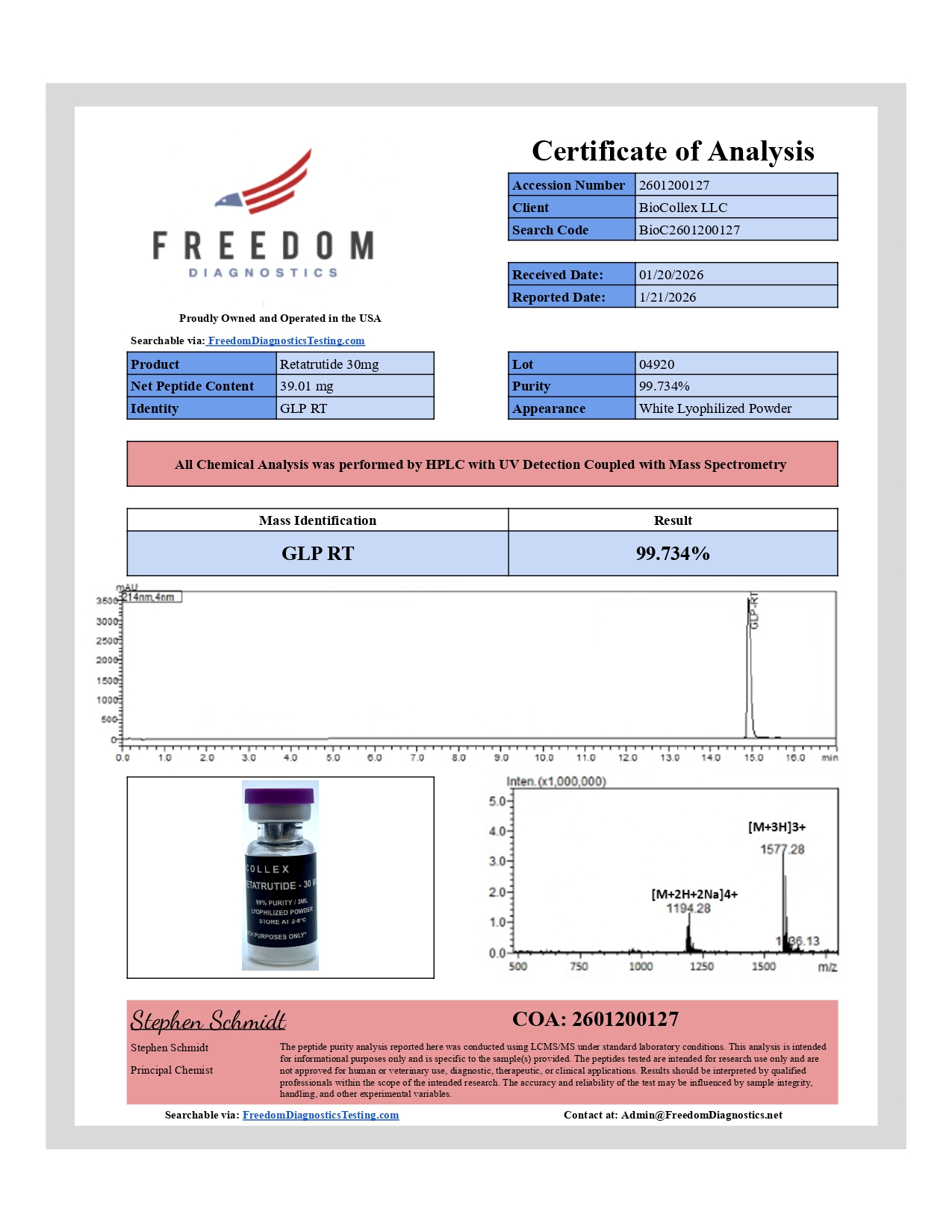DISCLAIMER: BIOCOLLEX RESEARCH PRODUCTS ARE FOR LABORATORY RESEARCH USE ONLY AND NOT INTENDED FOR MEDICAL OR THERAPEUTIC USE. THESE COMPOUNDS ARE NOT FDA-APPROVED TO DIAGNOSE, TREAT, CURE, OR PREVENT ANY DISEASE.